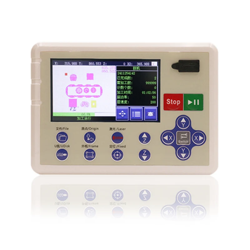 Il sistema presenta un touchscreen da 4,3 pollici, supporta più formati di file e consente il riconoscimento grafico e il taglio ad alta precisione. Supporta il riconoscimento simultaneo di più modelli, consentendo l'elaborazione di più grafiche per migliorare l'efficienza della produzione. La funzione di alimentazione intelligente può correggere automaticamente le deviazioni per garantire il taglio della qualità nei punti di giunzione. Nel frattempo, il sistema supporta anche l'alimentazione dell'asse Z e il potenziamento riprendono le funzioni di taglio per garantire stabilità e continuità durante il processo di taglio.